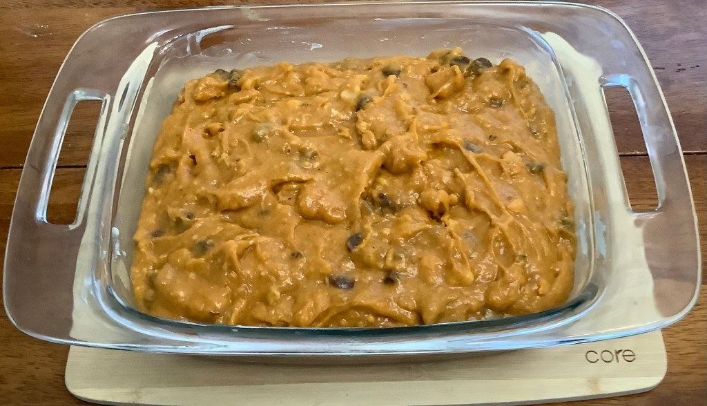 I’m fond of pumpkin & chocolate chip cookies sold at Kroger and Albertsons. My mother taught me to like pumpkin cream cake, and blonde brownies. The Tyner Pumpkin Bars seemed to meld the essence of all these delectable desserts.